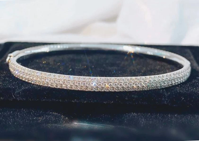 Introducing our exquisite Luxury High Fashion 18k White Gold 4.555ct Three Row Natural Diamond Bracelet, a true masterpiece that will elevate your style to new heights.