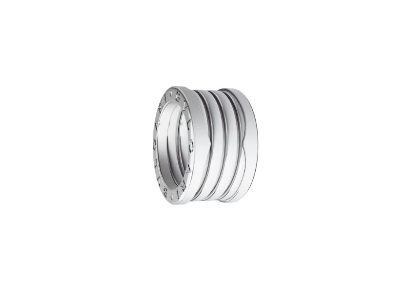 Introducing Preloved:B.zero1 four-band ring in 18 kt white gold, a timeless masterpiece that embodies the essence of Bulgari's visionary craftsmanship. Drawing inspiration from the iconic Colosseum, this ring is a bold testament to the brand's unrivaled creativity and innovative design.