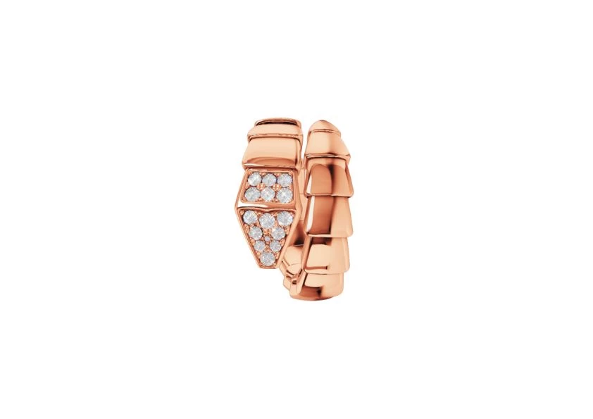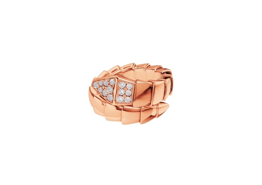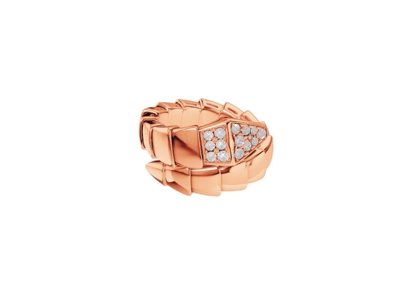 Introducing the Preloved: Serpenti Viper one-coil ring in 18 kt rose gold, adorned with exquisite pavé diamonds on the head. Prepare to be captivated by Bulgari's homage to its spirit animal, as it masterfully encapsulates the allure of seduction within this mesmerizing creation.