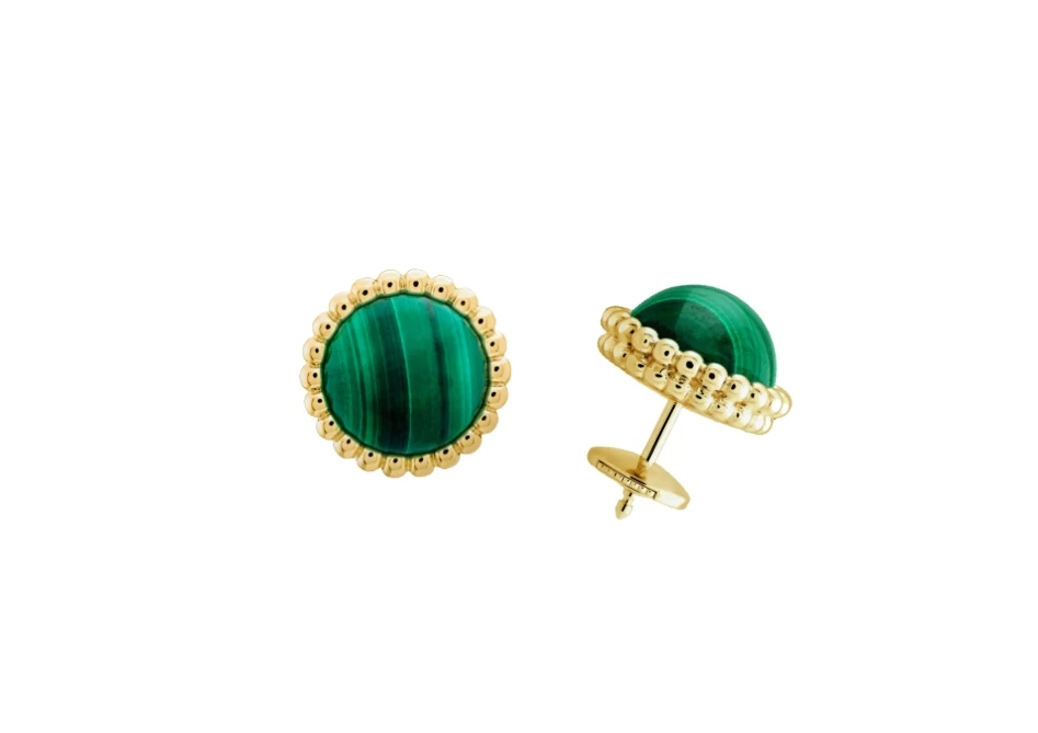 Introducing the exquisite Preloved: Perlée couleurs earrings by Van Cleef & Arpels. Crafted with utmost precision and elegance, these earrings are made from 18K yellow gold and adorned with stunning malachite stones. Each earring features two malachite stones, adding a touch of natural beauty and uniqueness to the design. As every stone is distinct, the color and features may vary slightly, ensuring that each creation is truly one-of-a-kind. The combination of the lustrous 18K yellow gold and the vibrant green malachite creates a captivating contrast, making these earrings a statement piece that will effortlessly elevate any outfit. With their timeless design and attention to detail, the Preloved: Perlée couleurs earrings are a testament to Van Cleef & Arpels' commitment to exquisite craftsmanship and unparalleled beauty. Add a touch of sophistication and elegance to your jewelry collection with these remarkable earrings.