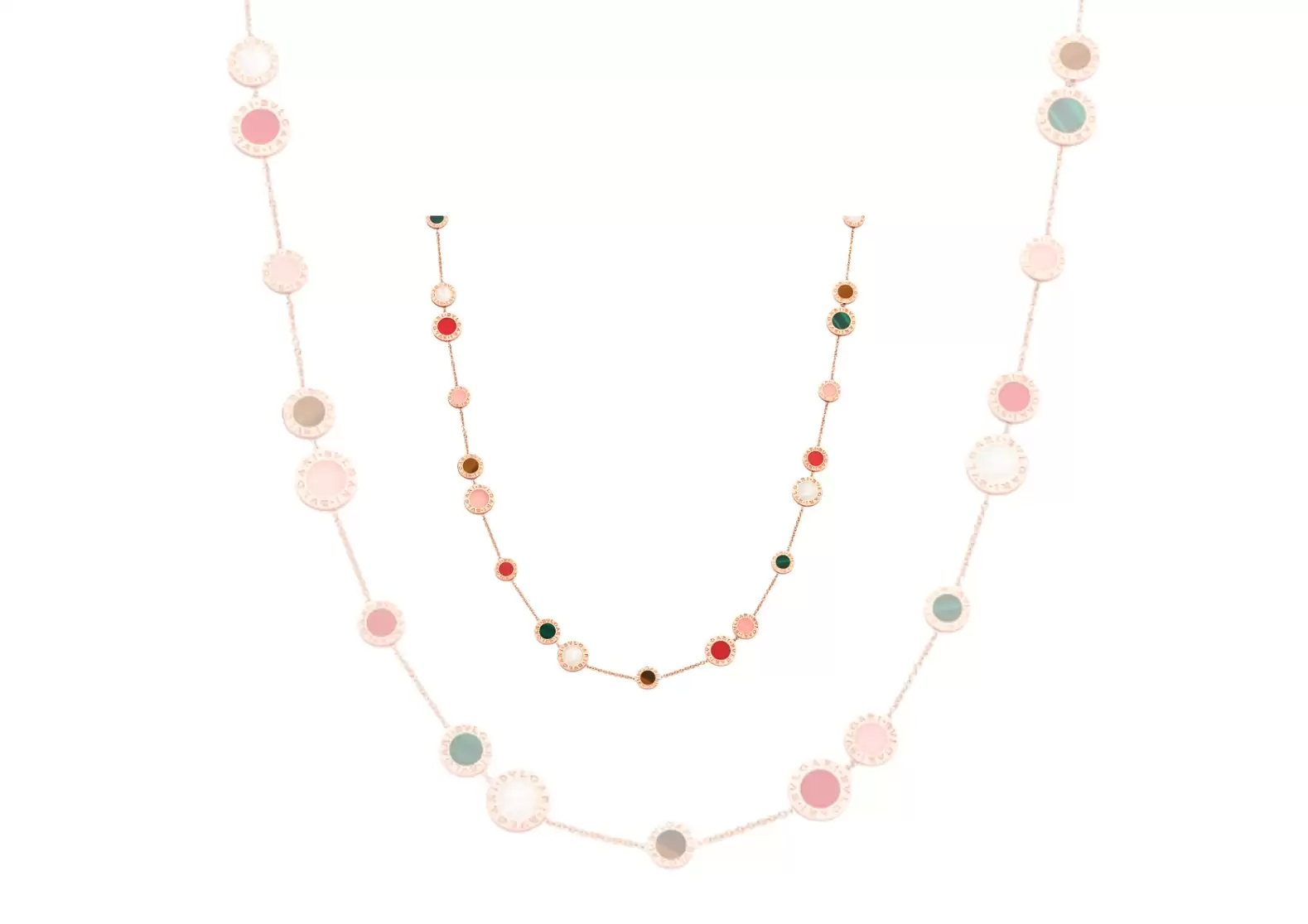 Introducing the exquisite 18 kt rose gold sautoir set with mother-of-pearl, pink opal, tiger's eye, malachite, and carnelian elements from Bvlgari. This stunning piece is a true testament to the brand's Roman heritage, while exuding an elegant and modern charm. The BVLGARI BVLGARI sautoir is more than just a necklace; it is a contemporary statement of class. Inspired by the curved inscriptions found on ancient coins, the trademark double logo has been transformed into a playful interpretation adorned with vibrant and multicolored hard gemstones. Crafted with the utmost precision and attention to detail, this sautoir is a true work of art. The lustrous mother-of-pearl, captivating pink opal, mesmerizing tiger's eye, enchanting malachite, and fiery carnelian inserts create a harmonious blend of colors and textures, making this piece truly unique. The 18 kt rose gold setting adds a touch of warmth and sophistication, enhancing the overall allure of this sautoir. Whether worn with an evening gown or a casual ensemble, it effortlessly elevates any look, making a bold and unforgettable fashion statement. Indulge in the beauty and elegance of the Bvlgari 18 kt rose gold sautoir with mother-of-pearl, pink opal, tiger's eye, malachite, and carnelian inserts. Embrace the Roman heritage with a modern twist and let this exquisite piece become a treasured addition to your jewelry collection.
