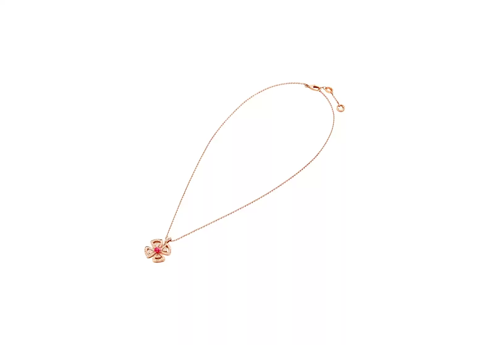 Introducing the Fiorever 18 kt rose gold pendant necklace, a true marvel that captures the essence of eternal beauty. Inspired by the captivating four-petal flower adored by the Romans as a symbol of pure happiness and boundless joy, this exquisite piece is a testament to Bvlgari's unrivaled craftsmanship.