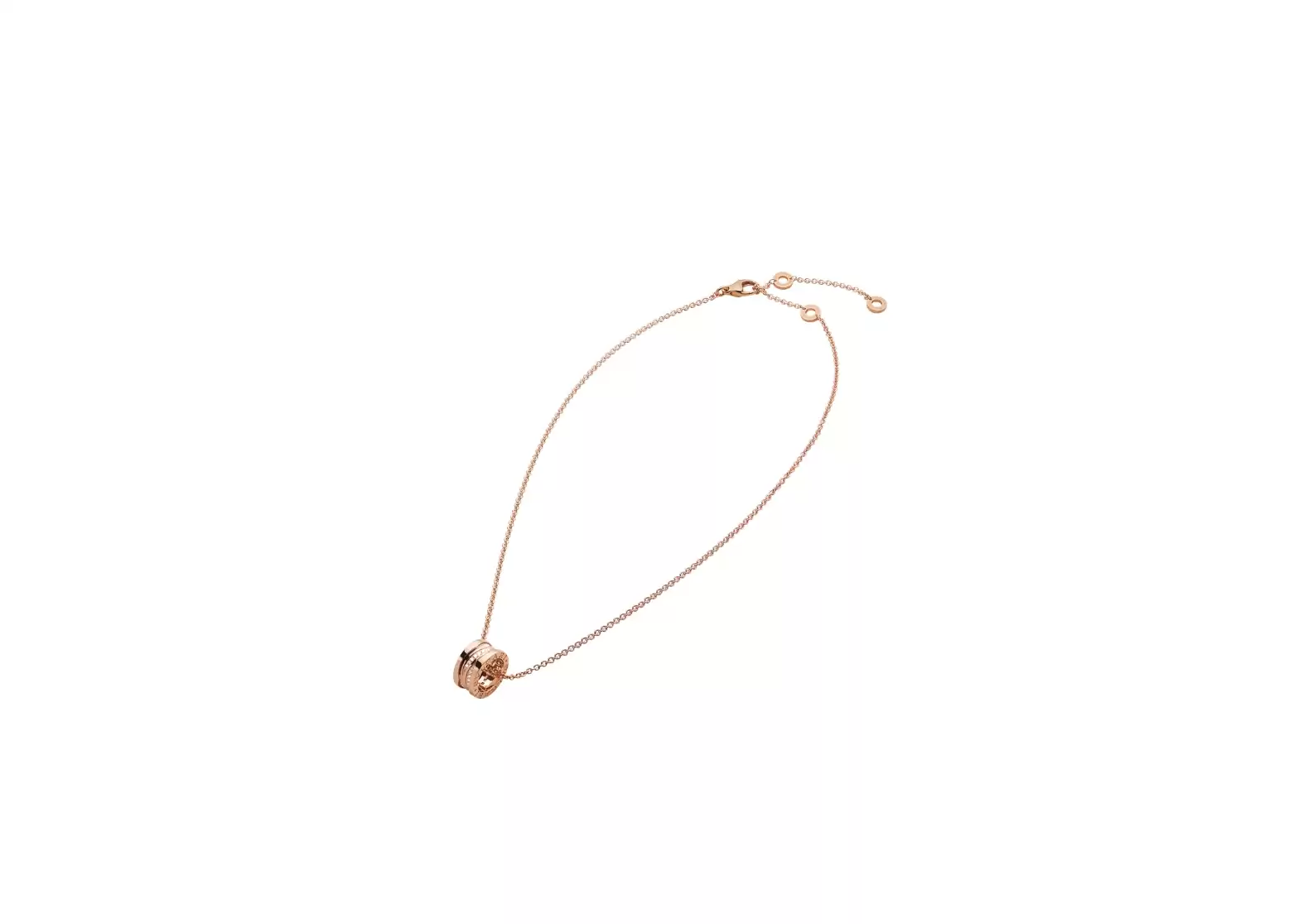 Introducing the extraordinary B.zero1 Design Legend necklace, a true testament to the revolutionary spirit it embodies. Crafted with utmost precision, this iconic piece is adorned with an exquisite 18 kt rose gold pendant, meticulously set with dazzling pavé diamonds that gracefully spiral along its surface.
