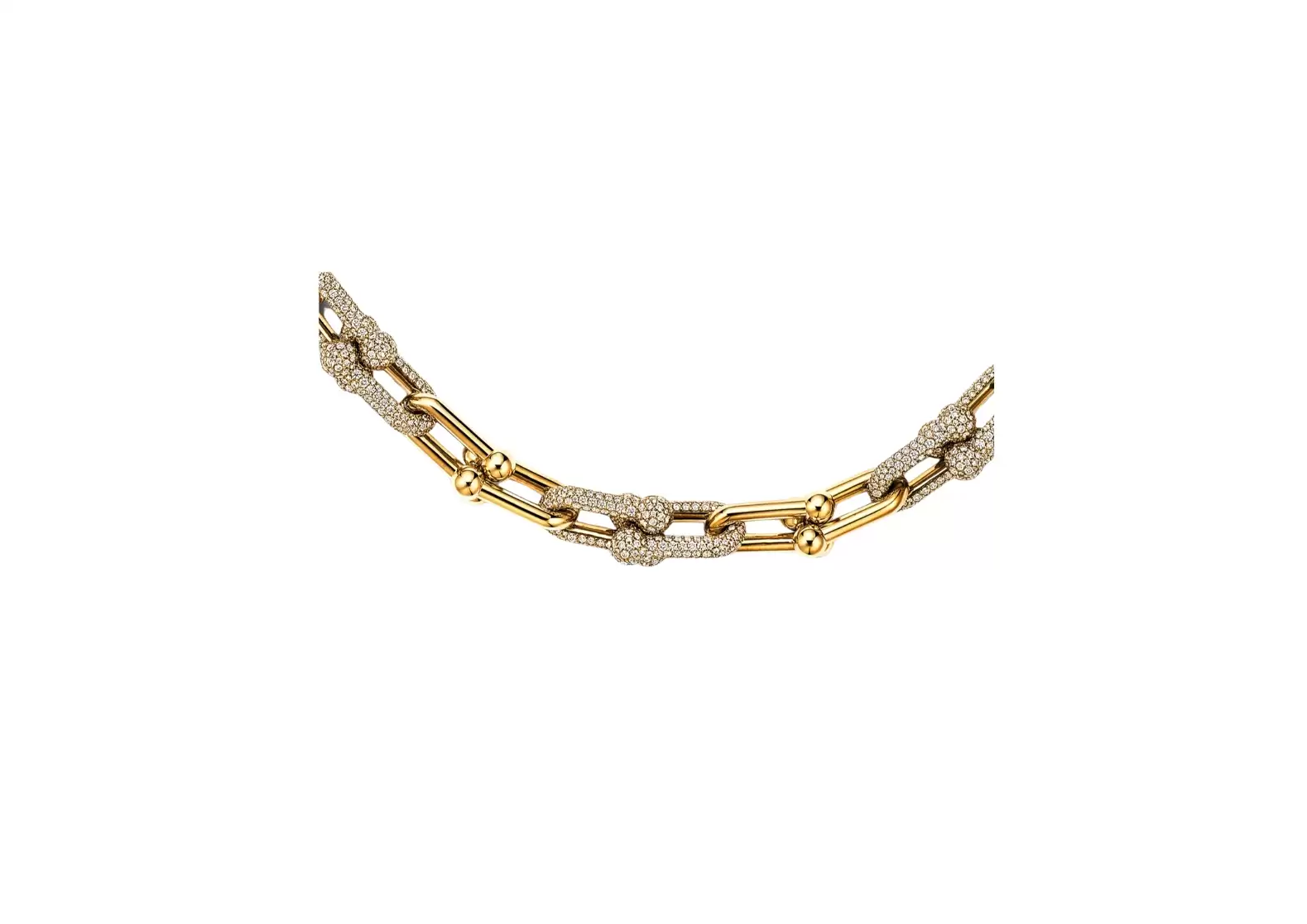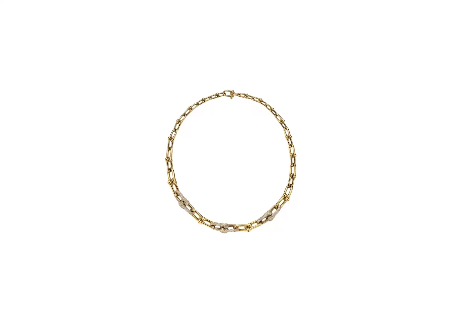 Whether you're attending a formal event or simply want to elevate your everyday style, the Preloved: Tiffany HardWear Graduated Link Necklace in Yellow Gold with Pavé Diamonds I 70353032 is the perfect choice. Its bold design and exquisite craftsmanship make it a timeless addition to any jewelry collection. Embrace the energy of New York City and let this necklace be a reflection of your own unique style.