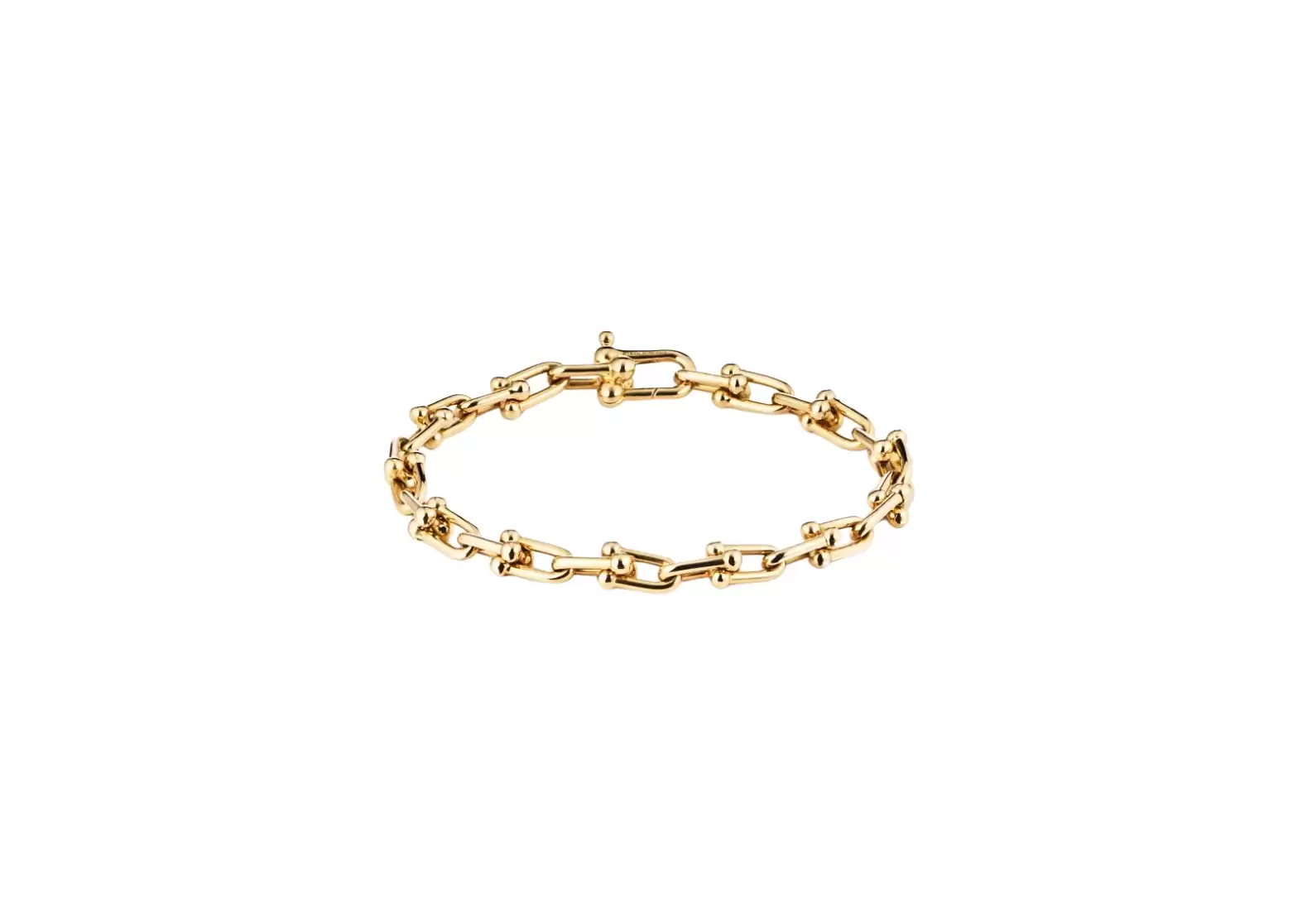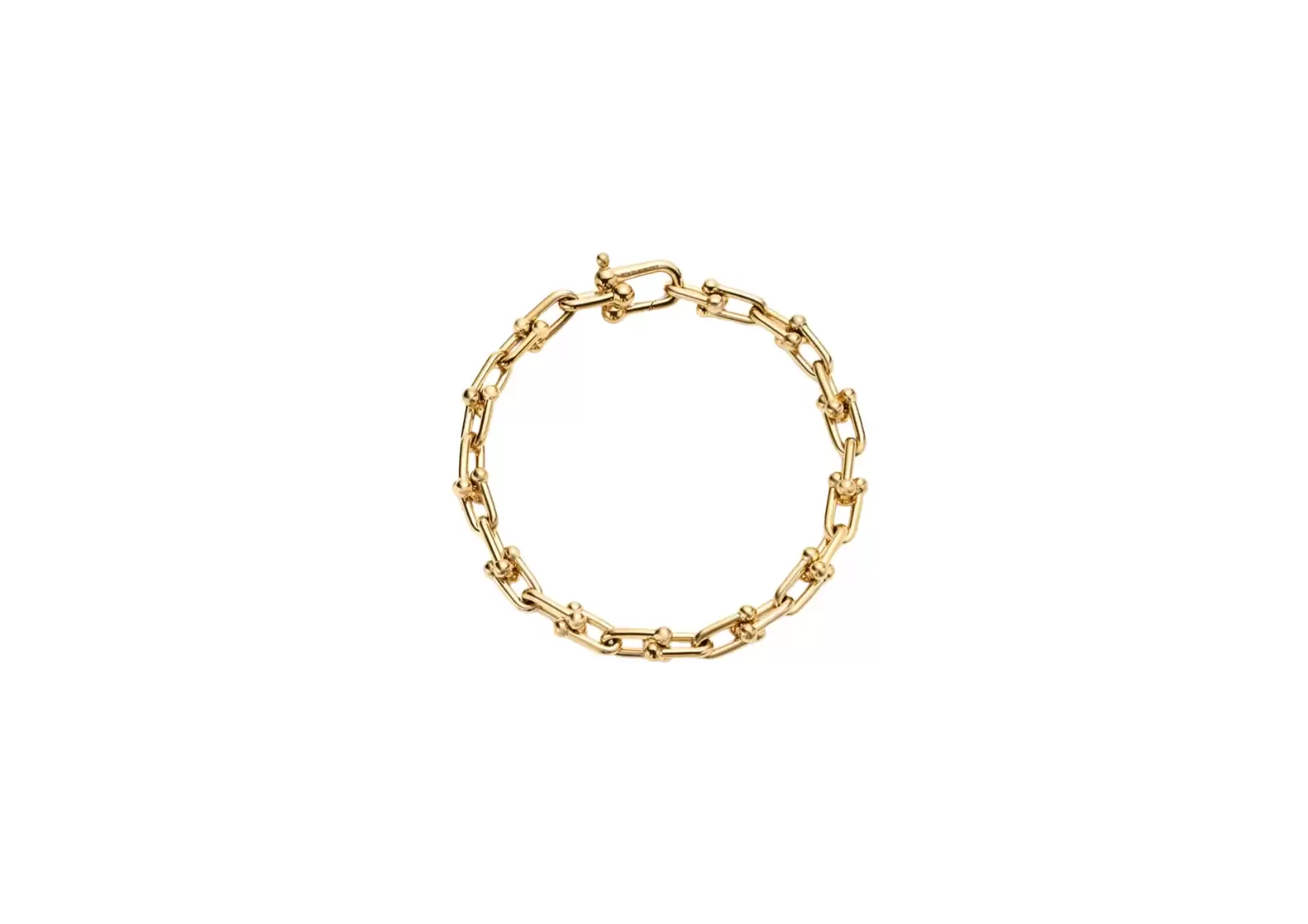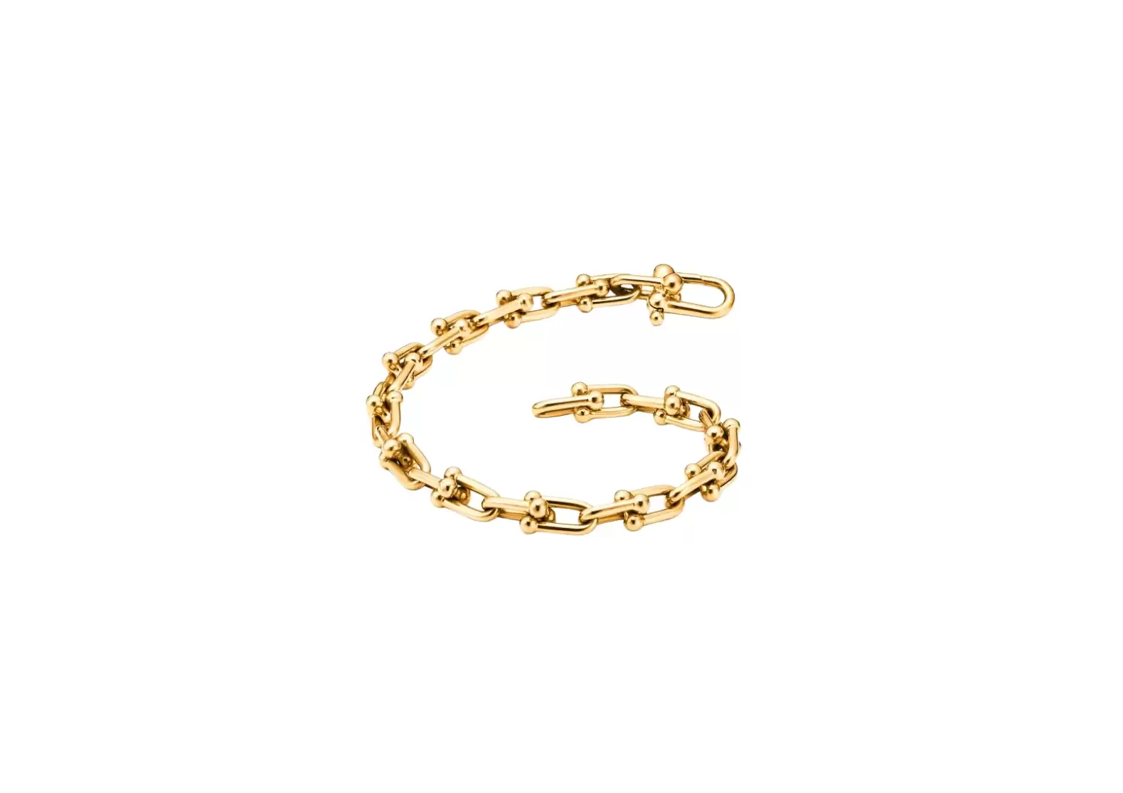 Introducing the Preloved: Tiffany HardWear Small Link Bracelet in Yellow Gold I 60153078. This exquisite piece embodies the essence of Tiffany HardWear, exuding elegance with a touch of rebellion, perfectly capturing the spirit of the women of New York City.