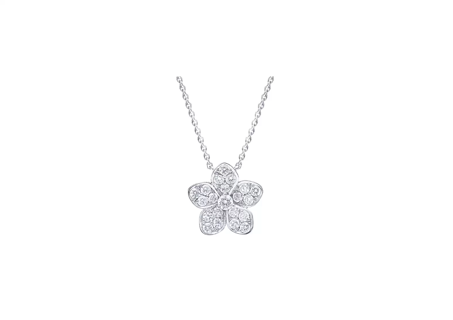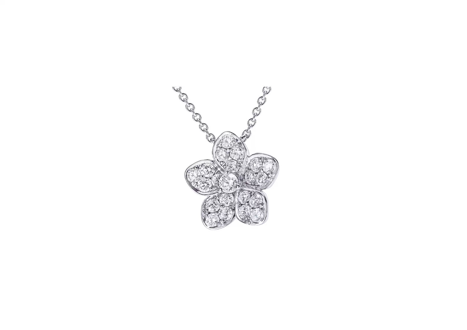Introducing the Preloved: Wild Flower Pavé Diamond Pendant in White Gold (I RGP773). This exquisite piece of jewelry seamlessly combines the artistry of high jewellery craftsmanship with a contemporary flair.
