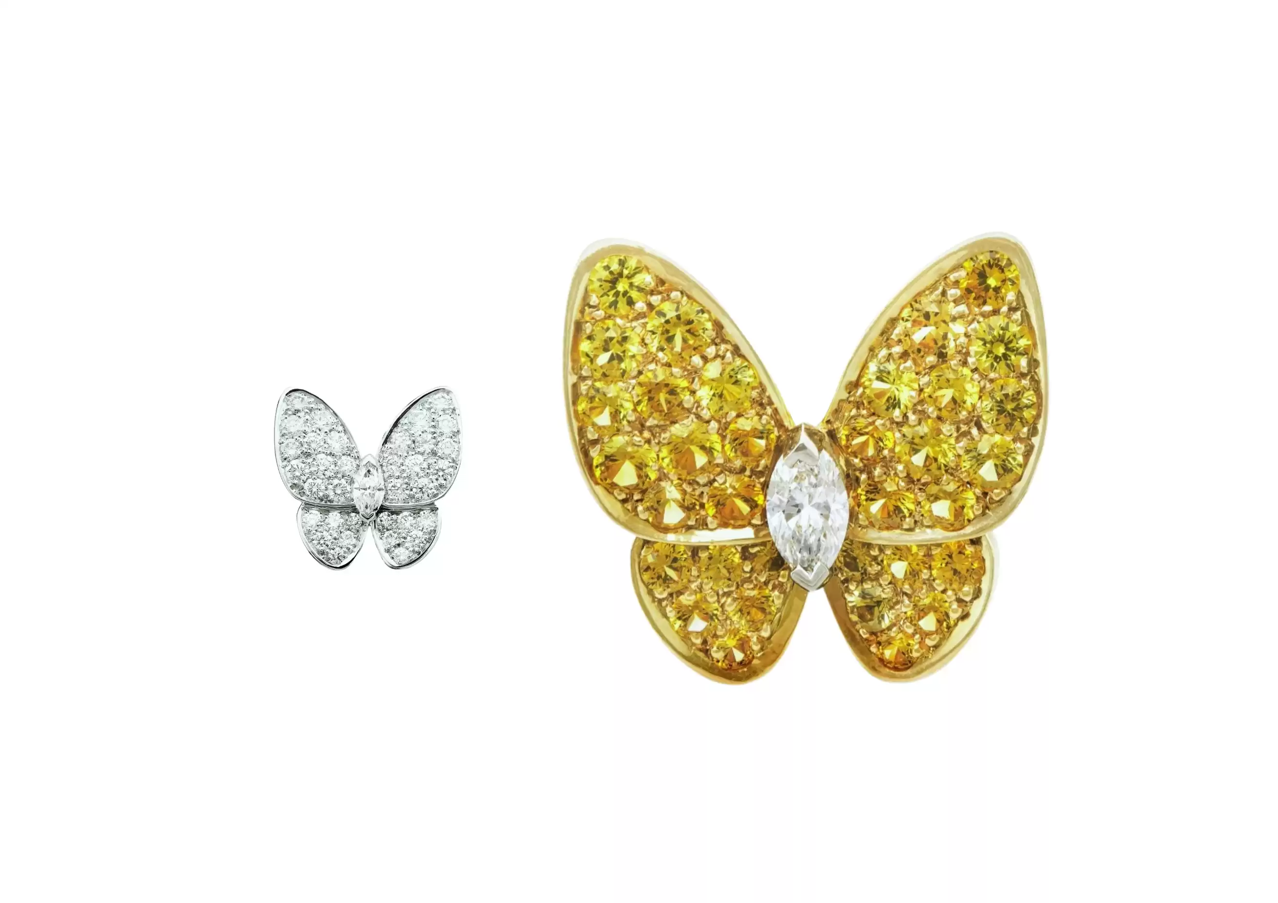 Introducing the exquisite Preloved: Two Butterfly earrings by the renowned brand Van Cleef & Arpels. Crafted with utmost precision and attention to detail, these earrings are a true testament to luxury and elegance. Made from 18K yellow gold, these earrings feature stunning round yellow sapphires that add a vibrant touch to their overall design. The rhodium plated 18K white gold setting perfectly complements the sapphires, creating a harmonious blend of colors. To enhance their allure, these earrings are adorned with both round and marquise-cut diamonds. The diamond quality ranges from DEF, ensuring exceptional brilliance, to IF to VVS, guaranteeing clarity and purity. With a total of 36 diamonds weighing 0.99 carats and 34 yellow sapphires weighing 0.88 carats, these earrings are a true embodiment of sophistication and glamour. They effortlessly capture the essence of nature's beauty, making them a perfect accessory for any occasion. Indulge in the timeless elegance of the Preloved: Two Butterfly earrings by Van Cleef & Arpels. With their impeccable craftsmanship and captivating design, these earrings are a must-have for any jewelry connoisseur. Elevate your style and make a statement with these exquisite earrings that are sure to turn heads wherever you go.
