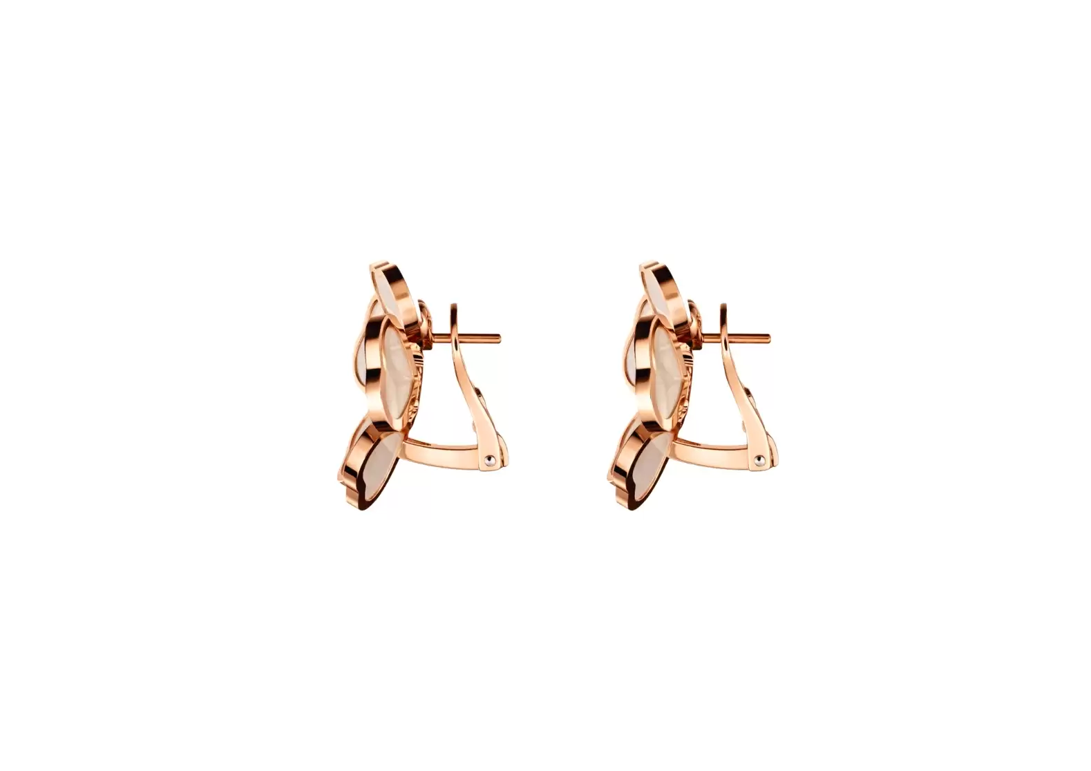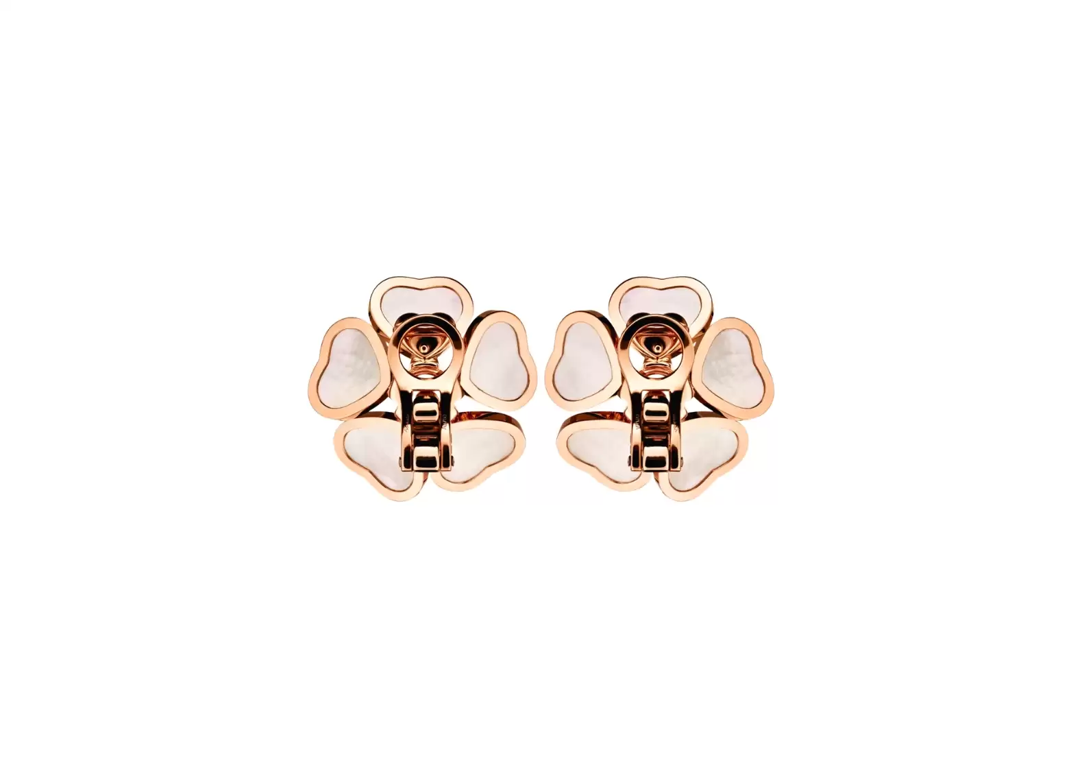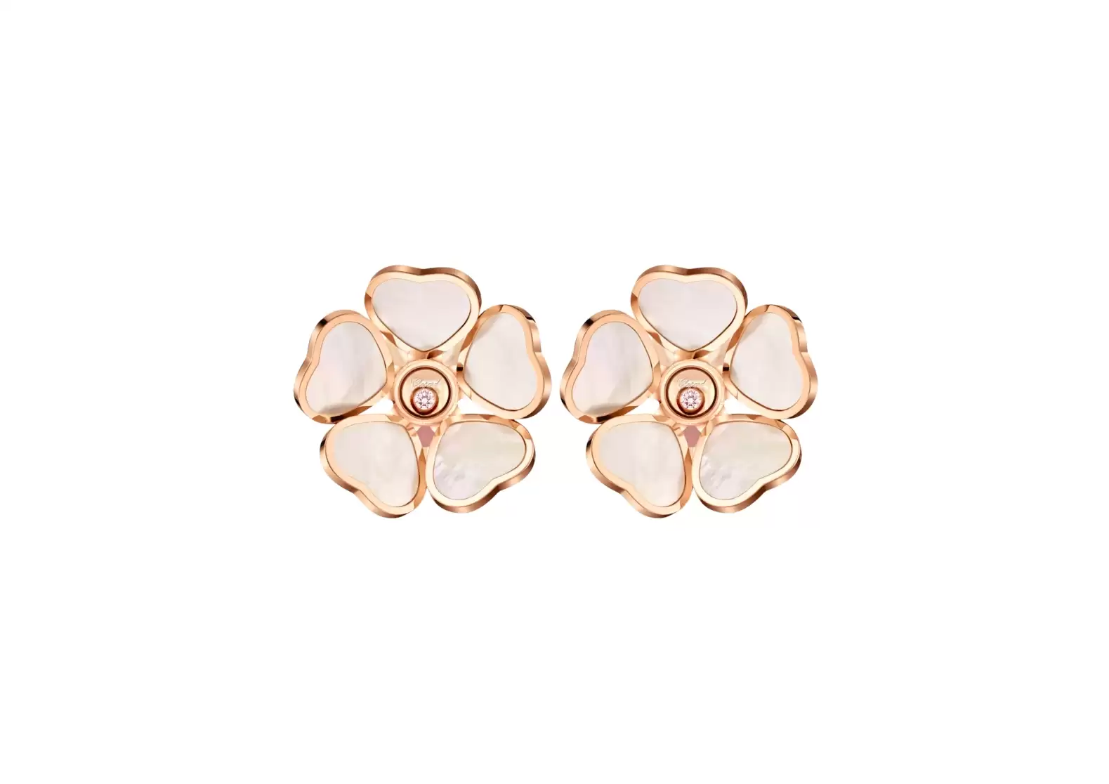 Introducing Preloved: Happy Hearts Flowers Earrings, a stunning piece that combines ethical rose gold, diamonds, and mother-of-pearl to create a truly enchanting accessory. Happy Hearts Flowers takes inspiration from the symbol of the Maison, delicately arranging a corolla of five hearts around a dancing diamond. This unique design forms exquisitely feminine flowers, symbolizing love and joy. Crafted with care and attention to detail, these earrings are made with 18K rose gold, ensuring both durability and a luxurious touch. The ethical sourcing of the rose gold reflects our commitment to sustainability and responsible practices. Each earring features a dazzling diamond, adding a touch of sparkle and elegance to the overall design. The diamonds are carefully selected for their exceptional quality, ensuring that they truly shine and catch the light. To enhance the beauty of these earrings further, mother-of-pearl is incorporated, adding a touch of iridescent charm. The combination of rose gold, diamonds, and mother-of-pearl creates a harmonious blend of colors and textures, making these earrings a true work of art. With the motto "Little Diamonds Do Great Things," these earrings not only make a style statement but also carry a deeper meaning. They remind us that even the smallest acts of love and kindness can have a significant impact on others. The Preloved: Happy Hearts Flowers Earrings are a timeless piece that can be cherished for years to come. With their intricate design and ethically sourced materials, they are a symbol of both elegance and conscious consumerism. Indulge yourself or surprise a loved one with these exquisite earrings. They are sure to bring joy and beauty to any occasion. REF. NUMBER: 84A085-5301