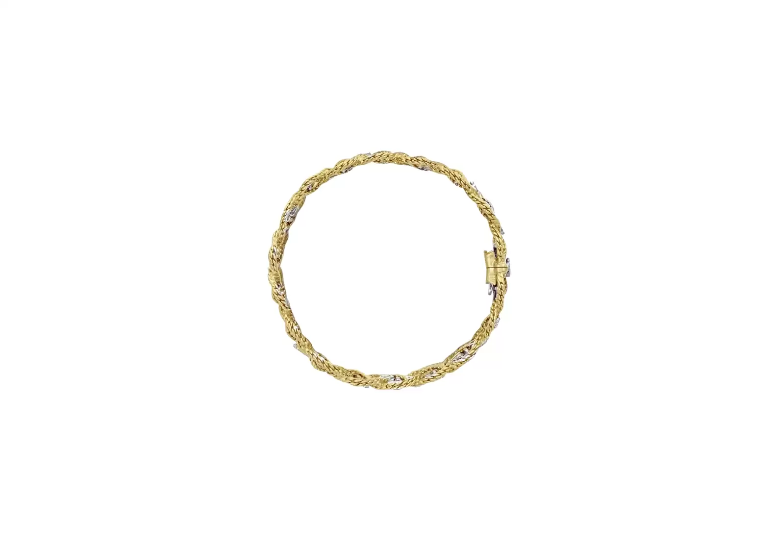 Introducing the captivating Preloved: Etoilee Bracelet in yellow and white gold, a true masterpiece that effortlessly combines elegance and sophistication. Crafted with utmost precision, this bracelet showcases the exquisite twisted thread technique, resulting in a mesmerizing design that is sure to catch the eye.