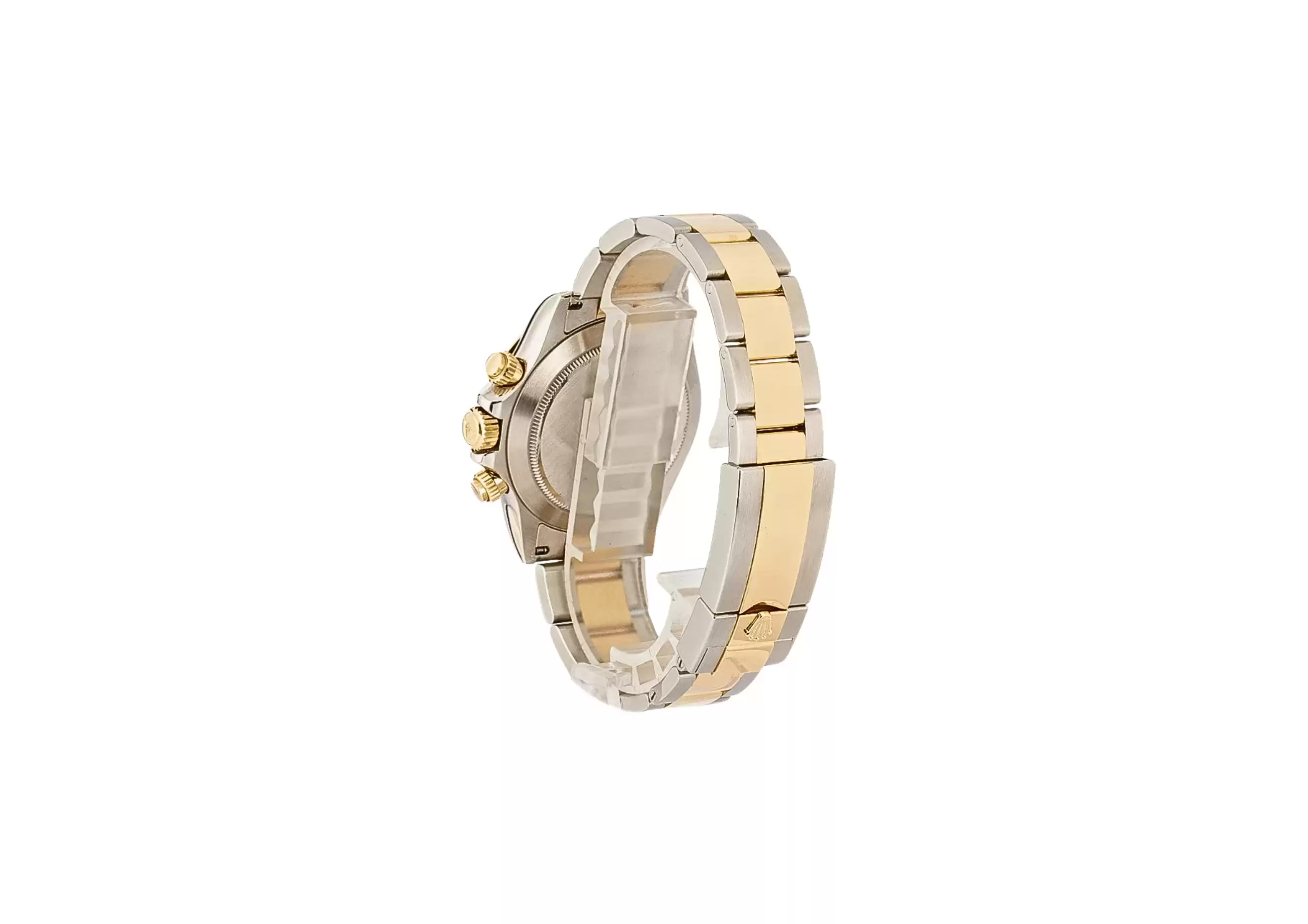 DescriptionIntroducing the Pro-owned Rolex Daytona 116503, a timeless masterpiece that exudes elegance and sophistication. This exquisite timepiece comes with its original box and papers, ensuring its authenticity and adding to its allure. Crafted in the year 2019, this Rolex Daytona boasts a stunning champagne diamond dial that catches the light with every movement. The 40mm case, made from a combination of steel and yellow gold, showcases a seamless blend of strength and luxury. Powered by an automatic movement, this watch offers precision and reliability, making it the perfect companion for any occasion. The steel and yellow gold bracelet, known as the Oyster bracelet, adds a touch of refinement to the overall design. With a length of 16.5 cm, it ensures a comfortable fit on the wrist. With a water resistance of up to 100 meters, this Rolex Daytona is not only a symbol of style but also practicality. Whether you're diving into the depths or attending a formal event, this timepiece is built to withstand any adventure. As a testament to its quality, this Pro-owned Rolex Daytona comes with a 1-year remaining manufacturer warranty, giving you peace of mind and assurance. Additionally, Watchfinder provides an extended 24-month warranty, ensuring your investment is protected. Located conveniently, you are invited to call and view this remarkable timepiece in person. Don't miss the opportunity to own a piece of horological excellence with the Pro-owned Rolex Daytona 116503. |