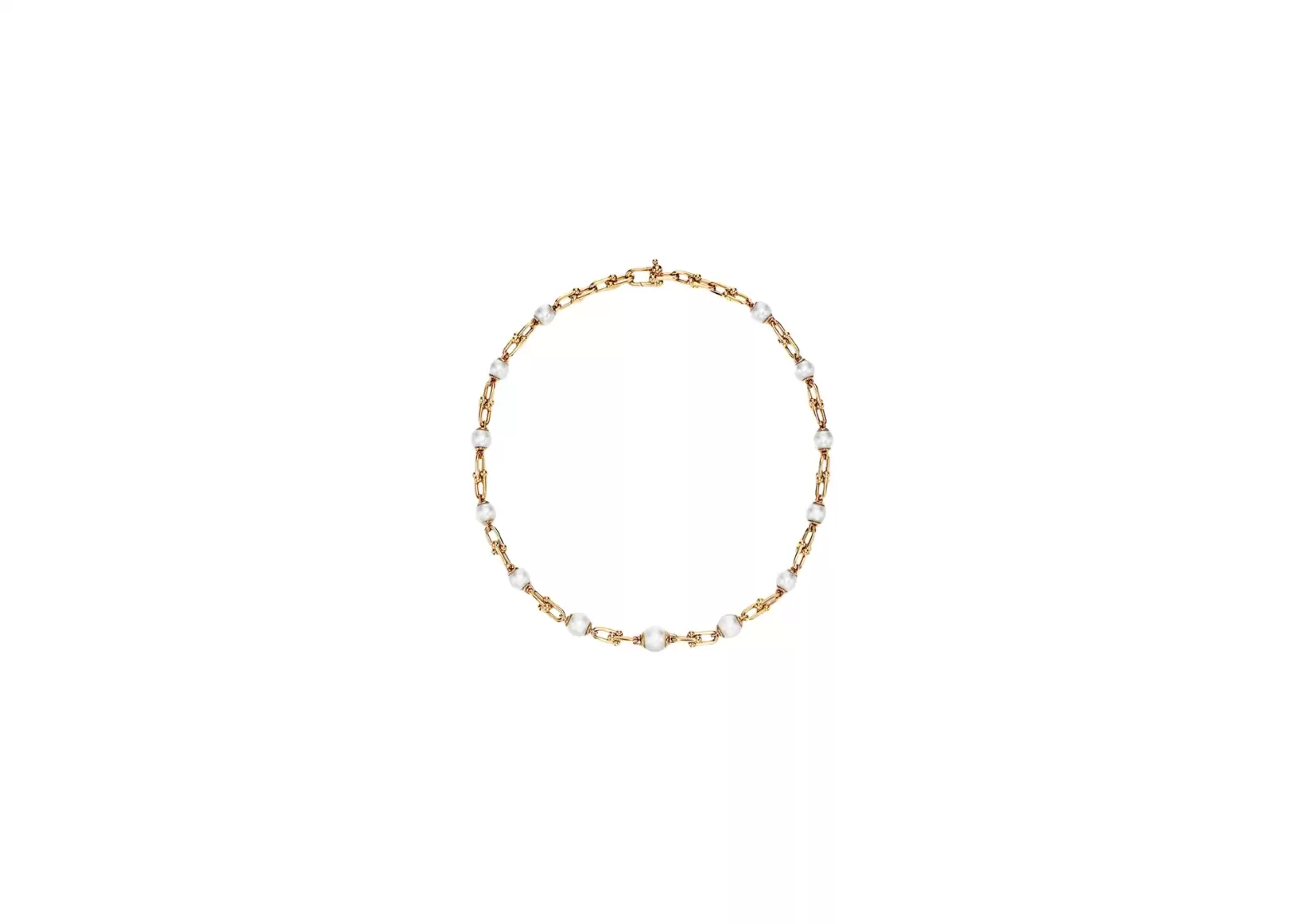 Experience the essence of New York City and embrace the bold energy it represents with the Preloved: Tiffany HardWear Graduated Link Necklace in Yellow Gold with Freshwater Pearls | 70606089. Elevate your style and make a statement with this remarkable piece that seamlessly combines classic elegance with contemporary flair.