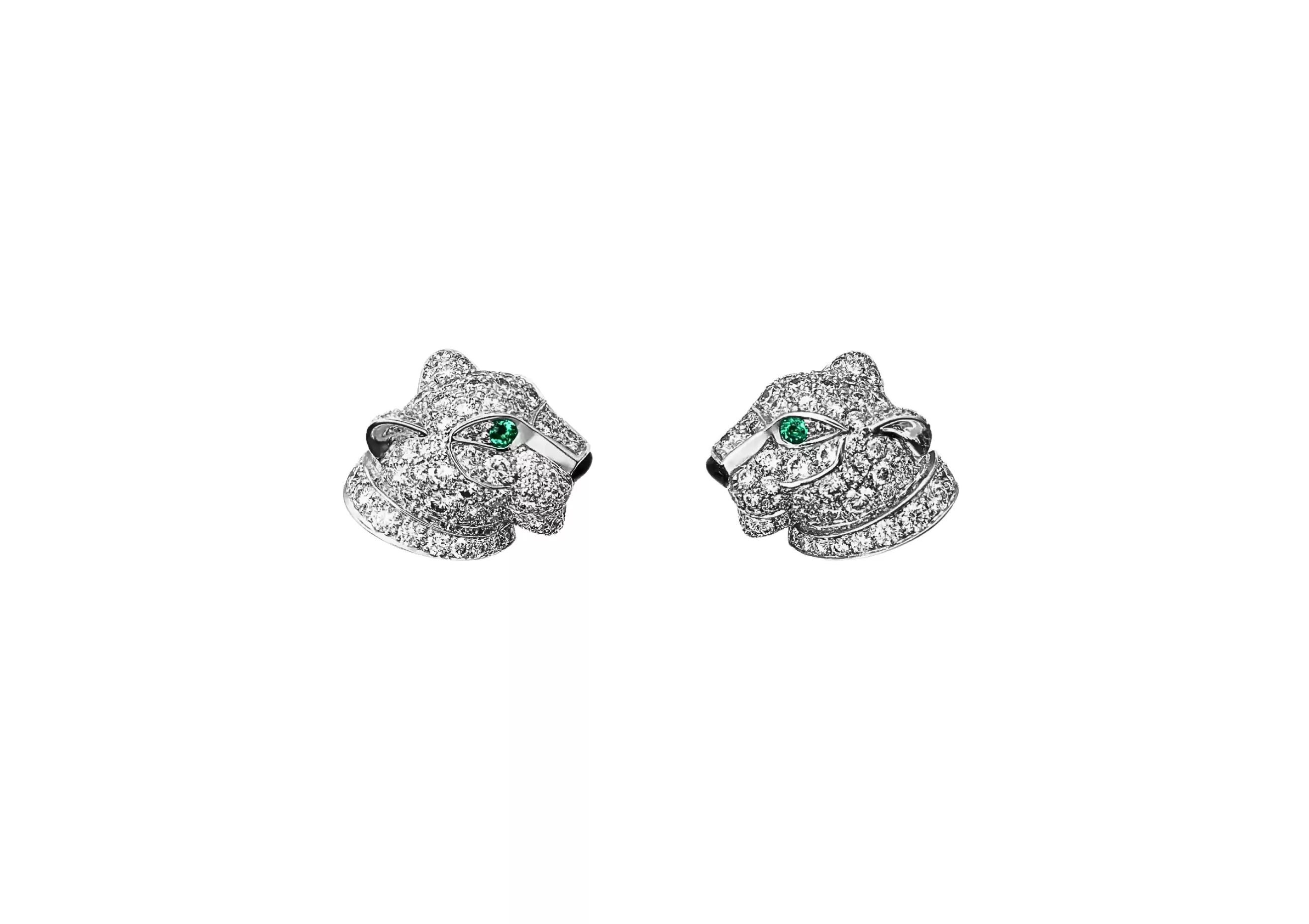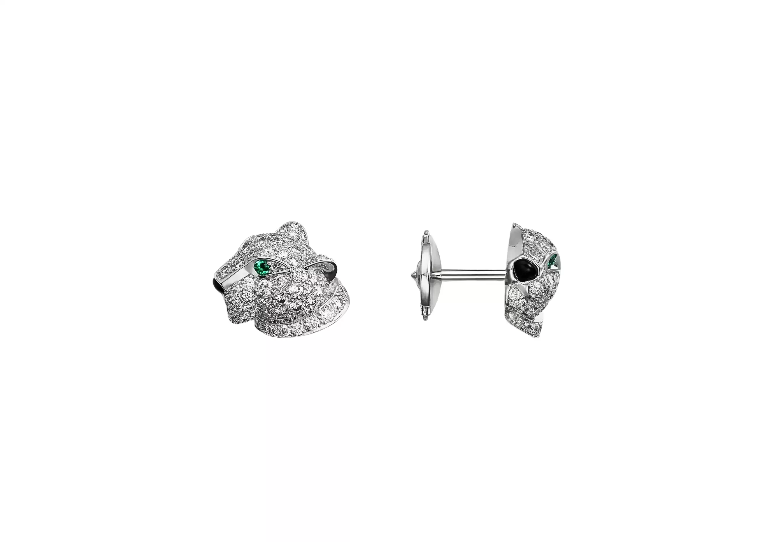 The Panthère de Cartier earrings feature a captivating design, adorned with mesmerizing emeralds, onyx, and a stunning array of 63 brilliant-cut diamonds totaling 0.77 carat. Each element has been carefully chosen to enhance the overall beauty of these earrings, creating a breathtaking visual spectacle.