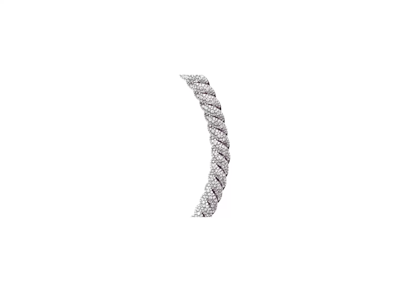 The centerpiece of this stunning necklace is the pavé-set diamonds, boasting a remarkable total carat weight of 13.00. Each diamond has been meticulously placed to create a dazzling display of brilliance and sparkle. The diamonds are expertly set along the sculpted cable design, adding a unique touch to this already exceptional piece.