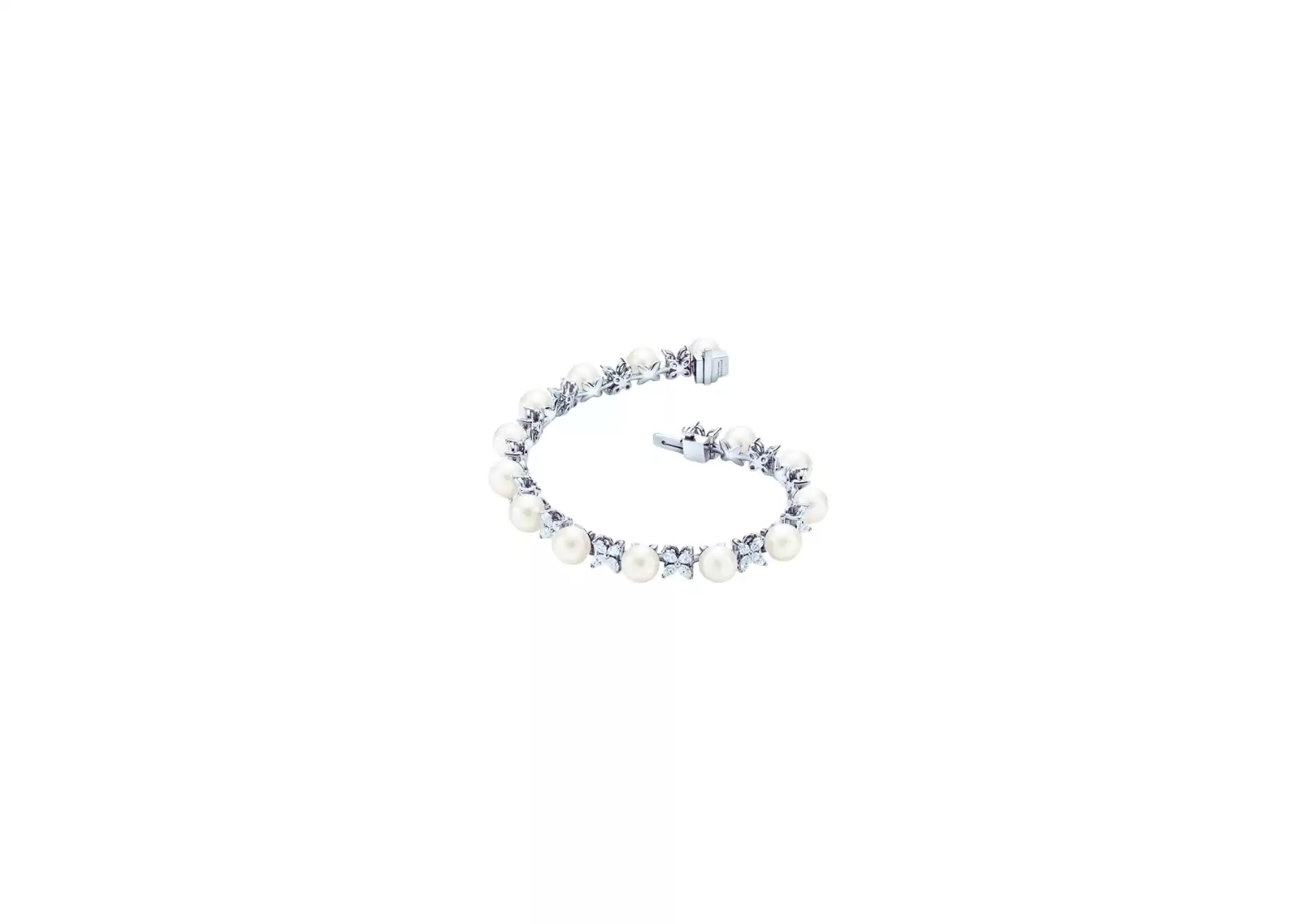Introducing the Preloved: Tiffany Victoria® Tennis Bracelet In Platinum With Diamonds And Pearls. This exquisite piece is inspired by the mesmerizing fire and radiance of our superlative diamonds, creating a truly enchanting accessory.