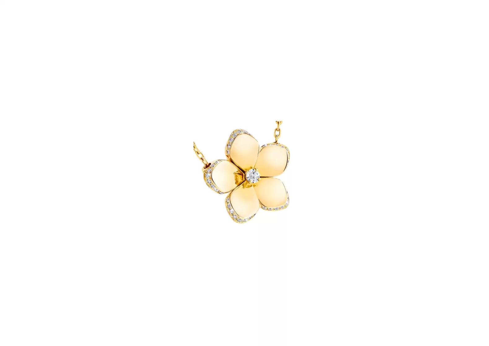 Meticulously crafted with carefree charm and a touch of untamed elegance, this pendant is made from 18 carat yellow gold. Each petal is uniquely sculpted to capture the essence of a flower in full bloom, exuding a vibrant and lively aura. The edges of each petal are adorned with pavé diamonds, adding a touch of sparkle and brilliance.