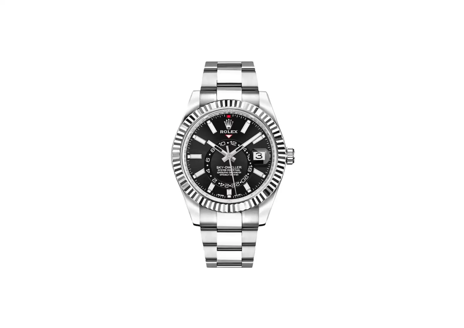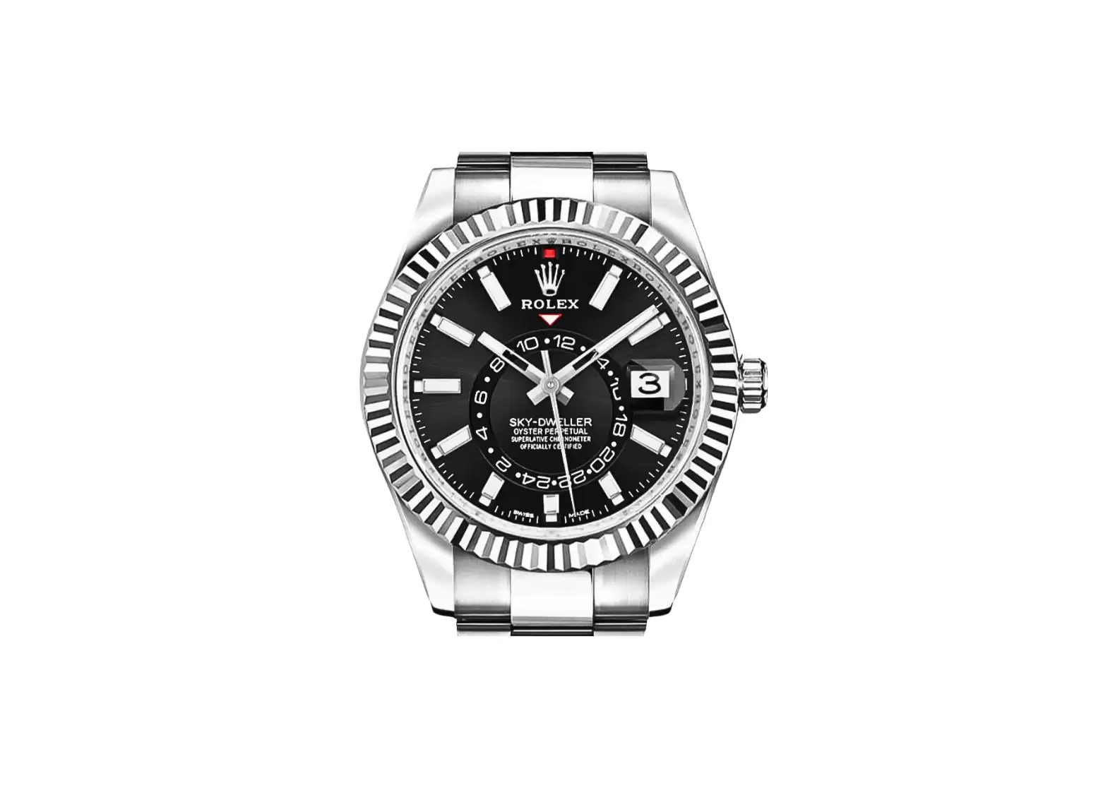 Also known as model M326934-0005 or 326934-BLKSO, this Pre-owned Rolex Sky-Dweller White Gold Fluted Bezel Men's Luxury Watch is a true masterpiece that combines style, functionality, and craftsmanship. Elevate your watch collection with this exceptional timepiece that exudes luxury and sophistication.