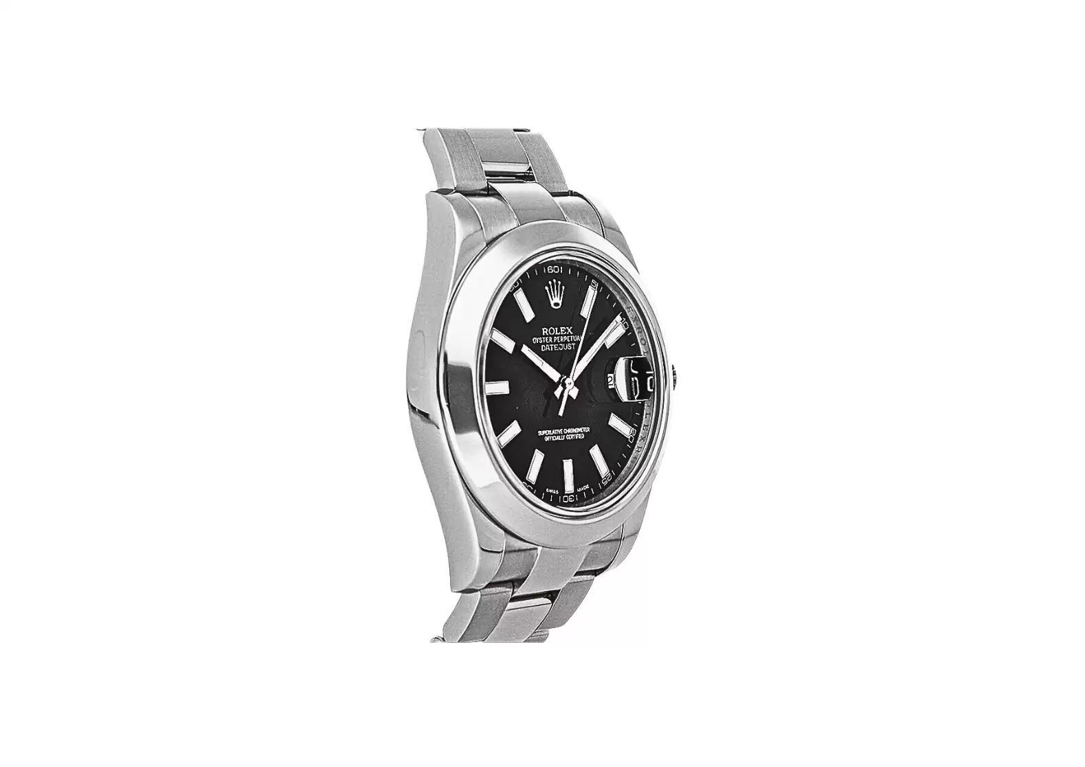 With its sleek and sophisticated design, this Rolex Datejust II 41 watch is sure to make a statement on any wrist. The black dial is adorned with index hour markers and features a 60-second/minute track, allowing for precise timekeeping. The polished stainless steel smooth bezel adds a touch of elegance to the overall aesthetic.