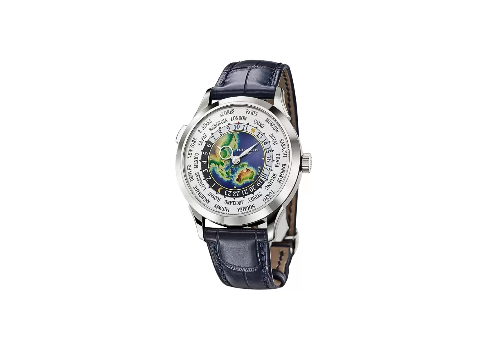In a nod to the vibrancy and allure of South-East Asia and Oceania, Patek Philippe presents this exceptional watch in a new white gold version, adorned with a mesmerizing Grand Feu cloisonné enamel dial. The skilled artisan meticulously outlines the continents using delicate gold wire, before filling the compartments with a variety of enamel colors that accurately replicate the oceans and land masses. The dial plate is then repeatedly fired at high temperatures in a kiln, resulting in a breathtaking work of art.